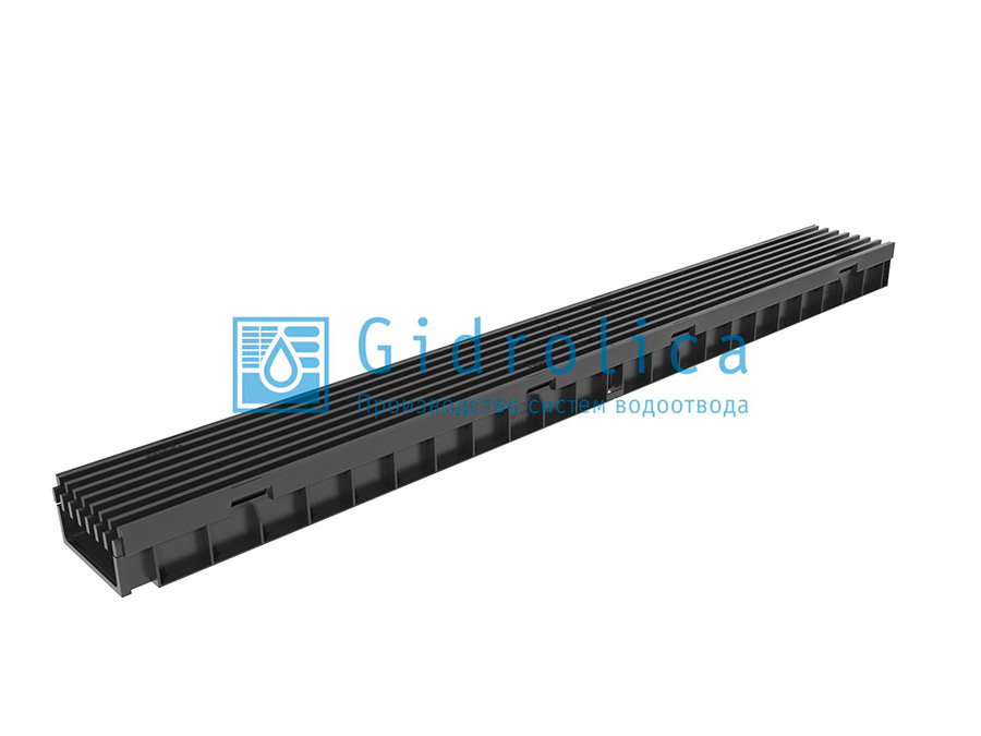 Лоток пластиковый 1000х114х55 мм с решеткой пластиковой ячеистой, предназначен для сооружения дренажных систем и систем поверхностного водоотвода. Серия Gidrolica Light, класс нагрузки A15 (до 1,5 т). Срок службы не менее 50 лет.