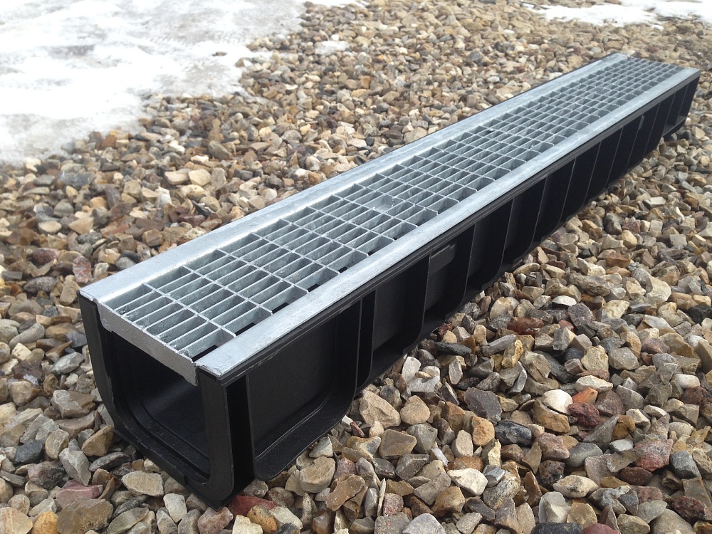 Лоток пластиковый коробчатый высотой 135 мм в сборе с решеткой ячеистой стальной оцинкованной. Ширина гидравлического сечения DN100. Комплект предназначен для сооружения систем поверхностного дренажа и ливневого водоотведения с классом нагрузки В125 (до 12,5 т).