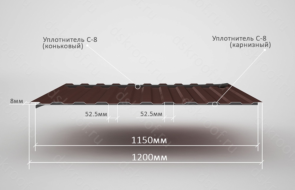 Профильный уплотнитель для профнастила С-8 изготавливается из вспененного пенополиэтилена.