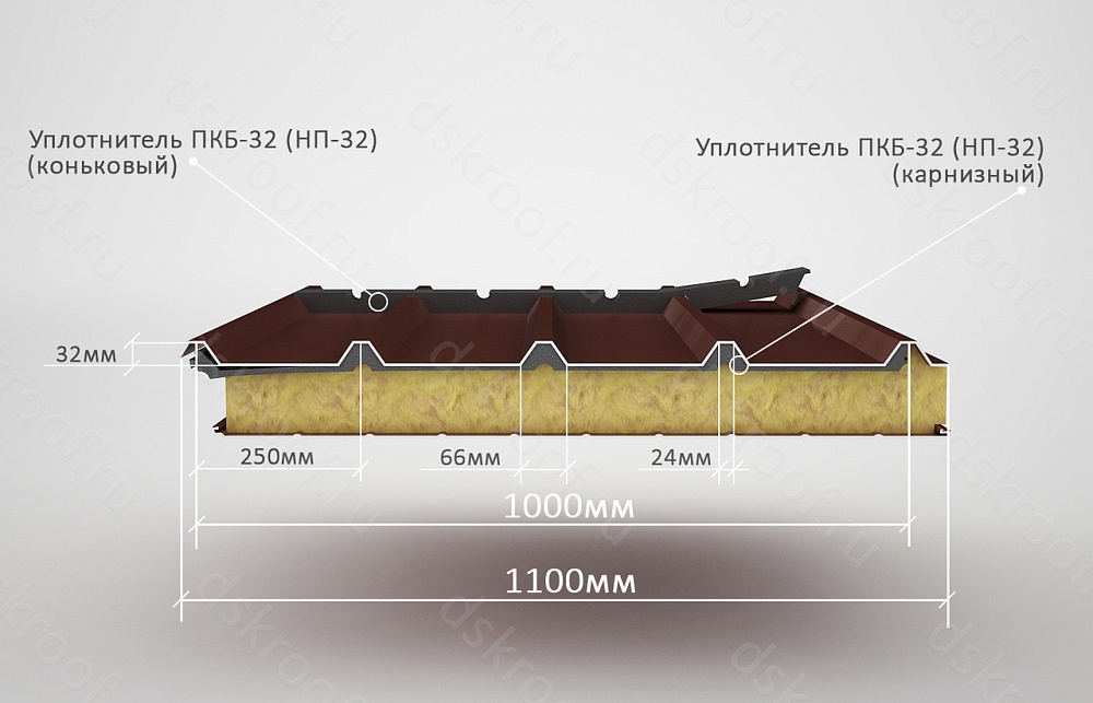 Уплотнитель кровельный РуфИзол ПКБ-32 (НП-32) предназначен для кровельных сэндвич-панелей высотой 32 мм.